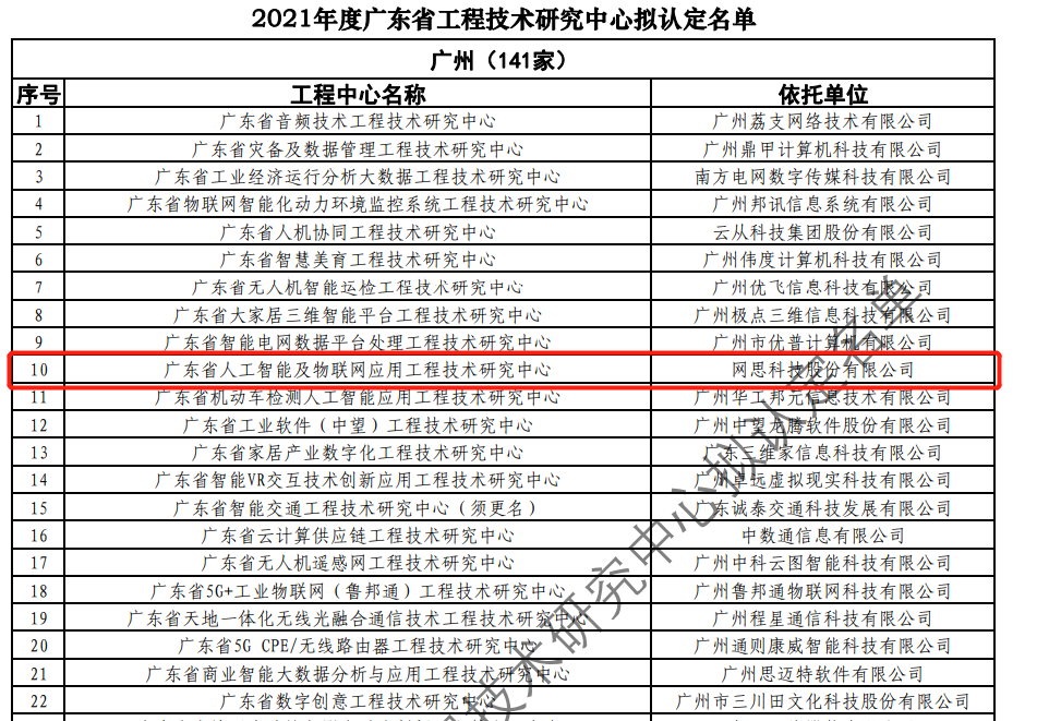 日前,广东省科技厅发布2021年度广东省工程技术研究中心名单。经过层层筛选、专家评审,依托云开体育-亚洲顶级体育平台,实时比分+在线娱乐,建设的“广东省人工智能及物联网应用工程技术研究中心”榜上有名。广东省工程技术研究中心主要依托省内行业、领域具有科技实力的、拥有一定规模以上创新型企业建设,部分依托高校和科研院所组建。工程中心旨在